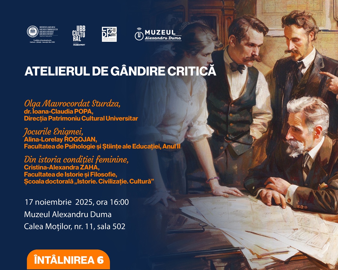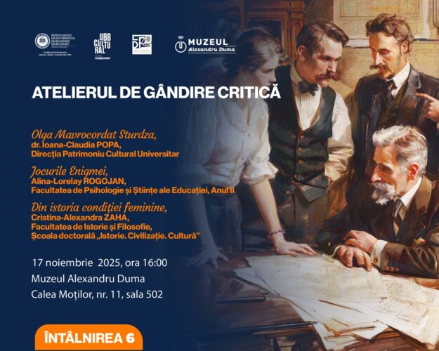 Ultima întâlnire din această serie a „Atelierului de gândire critică” de la Muzeul Alexandru Duma este o ocazie de împărtășire a preocupărilor personale în raport cu tema sa generală. Alături de cele trei invitate ale muzeului, sunteți bineveniți să aduceți în discuție alte subiecte relevante pentru ceea ce a însemnat viața savanților pe timp de război. Vă așteptăm la muzeu luni, 17 noiembrie 2025, de la ora 16.00! De la ora 18:00, veți putea lua parte în continuare la vernisajul…