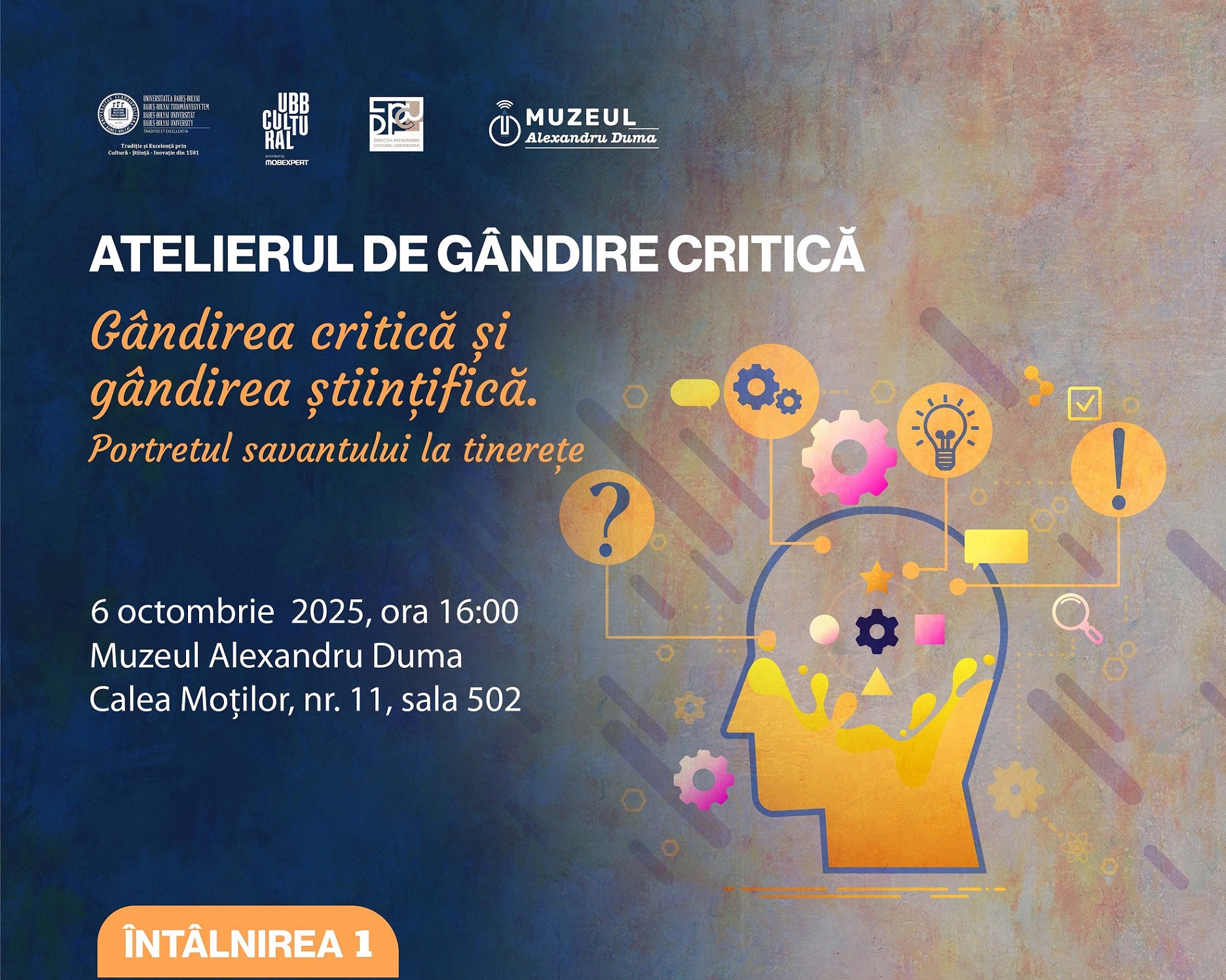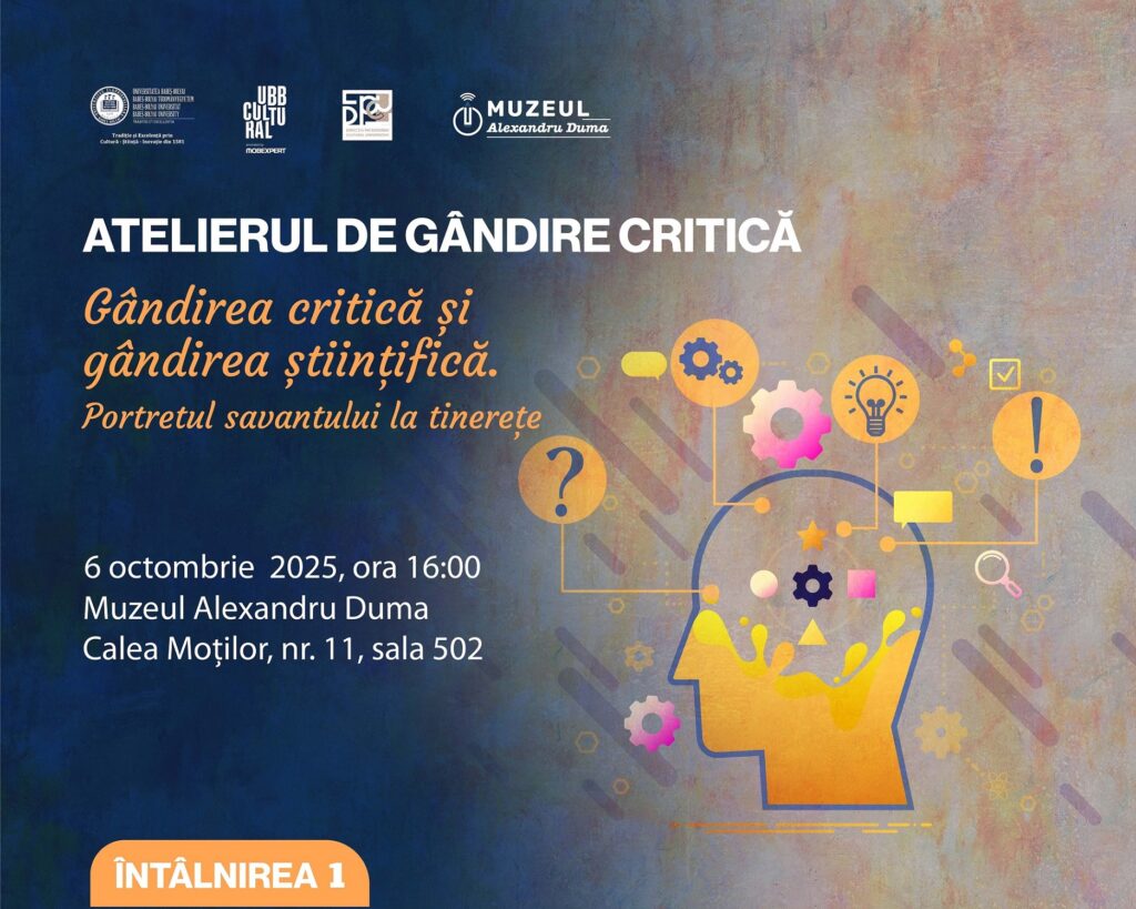 Luni, 6 octombrie, de la ora 16:00, vă așteptăm la prima întâlnire din cadrul seriei de toamnă a „Atelierului de gândire critică” de la Muzeul Alexandru Duma. Începând cu o dezbatere menită să identifice distincțiile sau asemănările dintre „gândirea critică” promovată în cadrul atelierului și „gândirea științifică” reprezentând tema noii serii, această întâlnire va continua cu activități de (re)descoperire a principalelor realizări ale câtorva figuri marcante de savanți din preajma Primului Război Mondial. În plus, veți avea ocazia să-i cunoașteți și într-o ipostază inedită – ca tineri în formare, cu mult înainte de succesele care le-au adus recunoașterea mondială. Dacă sunteți curioși să aflați mai multe, ne vedem luni la muzeu!