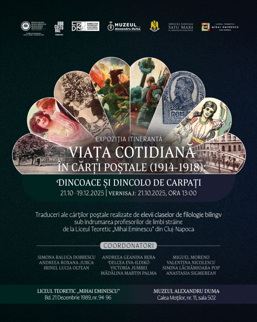 Direcția Patrimoniu Cultural Universitar a Universității Babeș-Bolyai din Cluj-Napoca, prin Muzeul Alexandru Duma, organizează expoziția itinerantă „Viața cotidiană în cărți poștale (1914-1918): dincoace și dincolo de Carpați”. Expoziția este realizată în colaborare cu Muzeul Militar Național „Regele Ferdinand I” din București, Serviciul Județean Satu Mare al Arhivelor Naționale și Liceul Teoretic „Mihai Eminescu” din Cluj-Napoca.