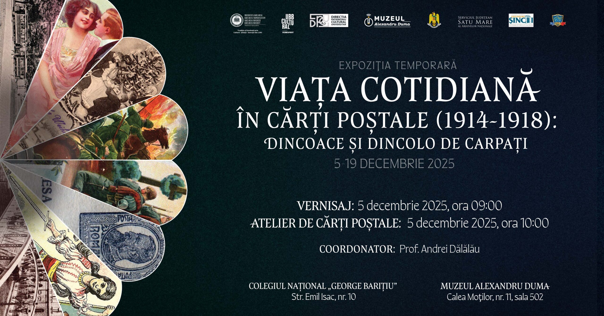 Direcția Patrimoniu Cultural Universitar a Universității Babeș-Bolyai din Cluj-Napoca, prin Muzeul Alexandru Duma, organizează expoziția itinerantă „Viața cotidiană în cărți poștale (1914-1918): dincoace și dincolo de Carpați”. Expoziția este realizată în colaborare cu Muzeul Militar Național „Regele Ferdinand I” din București, Serviciul Județean Satu Mare al Arhivelor Naționale, Colegiul Național „Gheorghe Șincai” și Colegiul Național „George Barițiu” din Cluj-Napoca.